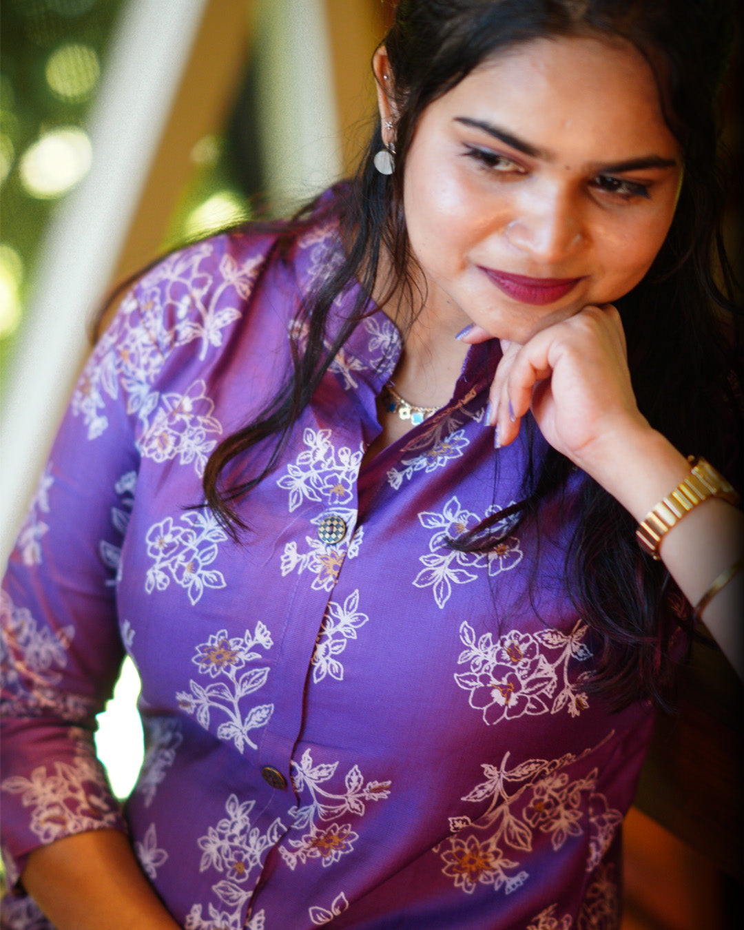 Vibrant lilac kurti with delicate white floral all over, featuring a stylish collar, three-quarter sleeves, and elegant button detailing. Perfect for everyday chic or festive vibes! #LilacKurti #FloralEmbroidery #EthnicWear #OOTD #Sale 🎉👗